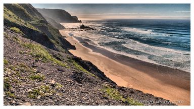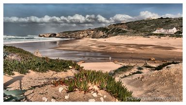 Praia do Castelejo is situated on the western Algarve coastline. It is divided from the neighbouring Praia da Cordoama by a distinctive rock formation. At low tide, you can walk across to Cordoama. Castelejo is breathtaking, mainly due to the roaring sea, the winds and the magnificent slate cliffs.